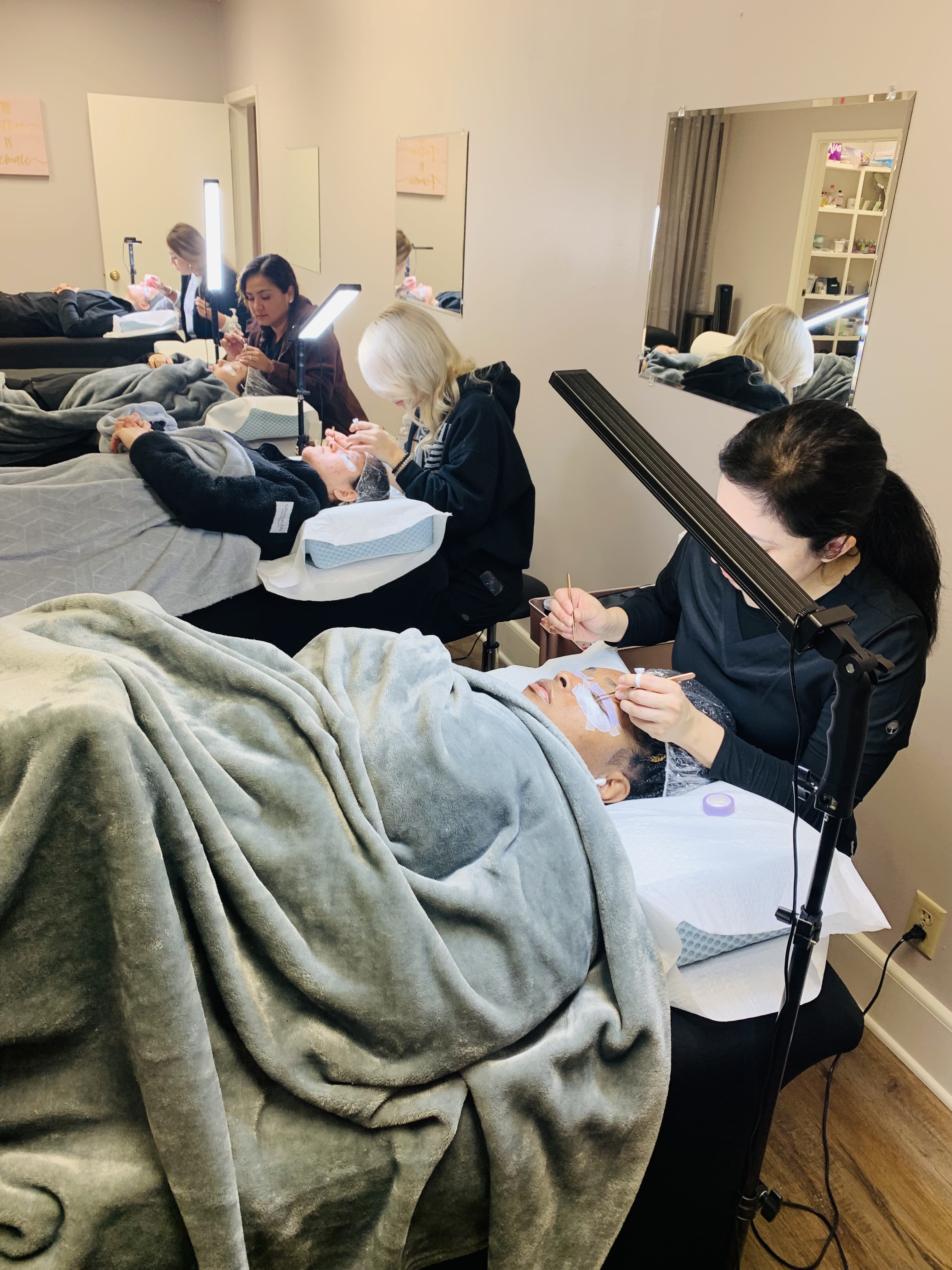 When LaCrecia opened her lash studio; she wanted to help aspiring lash techs who did not have a license in cosmetology or esthetics. Two of her friends in the beauty industry saw talent in LaCrecia and told her that she should start a lash school. The conversation helped her realize that, in her area, people were driving 100 plus miles to take a 2 day certificate training class. Many also didn’t realize they needed more than a certificate to perform lash services. LaCrecia sought to educate and mentor future lash artists.